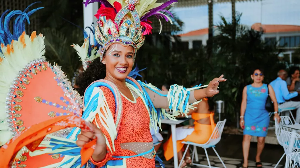 As talentosas equipes de DMC de Aruba se inspiraram nesse cenário autêntico, organizando eventos noturnos inesquecíveis em meio a essas ruas históricas, muitas vezes incorporando elementos do Carnaval em seus programas. Imagine os ritmos de uma banda de metais dando início a um evento festivo, seguidos por dançarinos de Carnaval em trajes suntuosos, preenchendo o ar com a alegria característica da época mais especial do ano em Aruba. Além de San Nicolas, as DMCs colaboraram com organizadores para levar experiências com temática de Carnaval a salões de hotéis e até mesmo à praia.